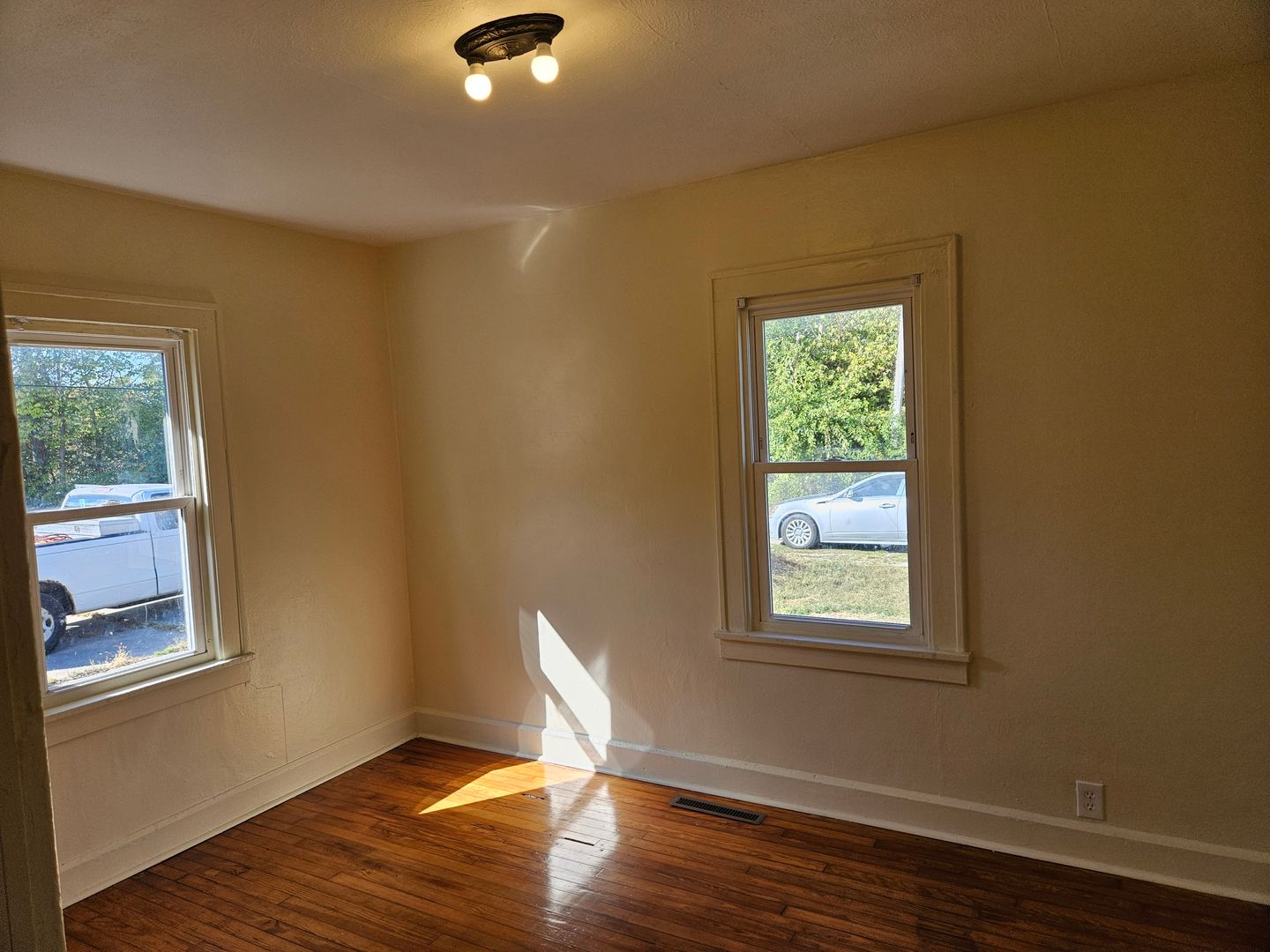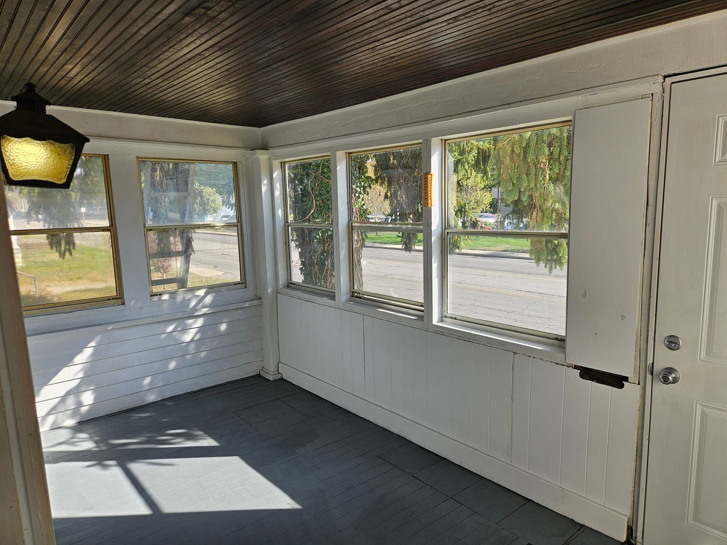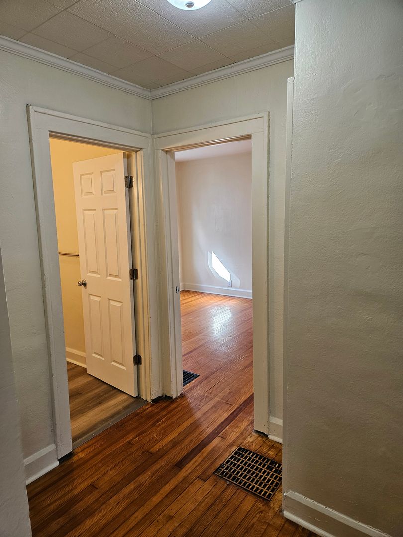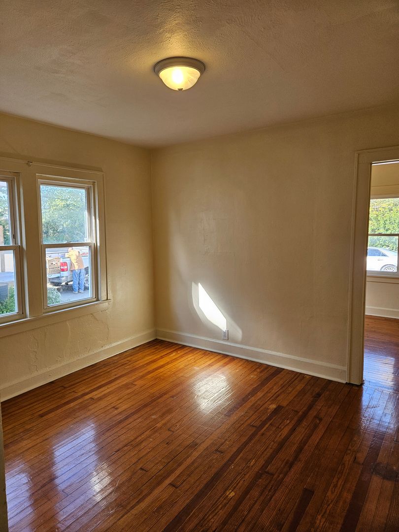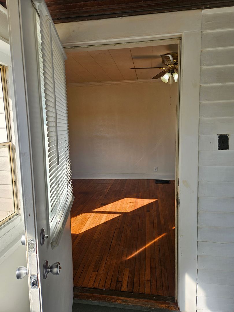 Two bedroom, one bath house with bonus room in back. Hardwood floors throughout. All new paint throughout. Galley kitchen with large living and dining room. Full basement for storage, main floor laundry, three season room front porch. Newly updated back porch. Ample parking behind the house off alley. Convenient location near downtown, Ball State, and Cardinal Greenway. Has central air. Small yard with a lawn mower provided and stored under the porch.