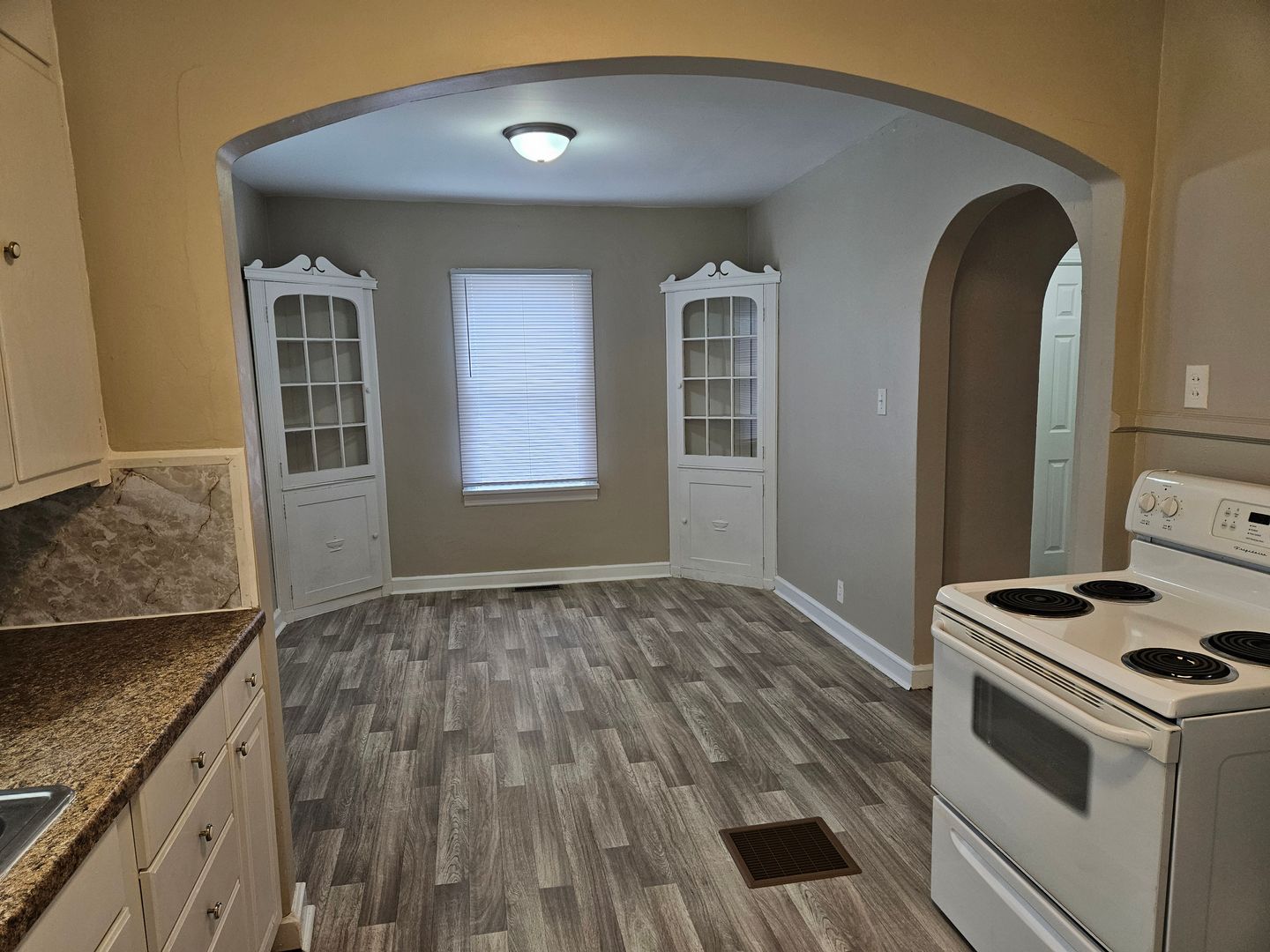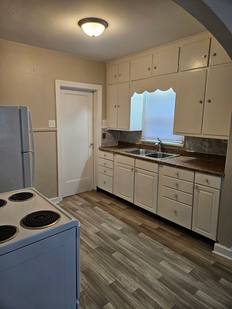 Cute two bedroom, one bath bungalow with built-in corner cabinets in the dining room and fireplace in living room. Updated bathroom and fresh paint throughout. All new flooring and appliances. Full basement with washer and dryer hookups and large laundry sink. Off street or rear parking; no garage. Very nice block with clean houses and friendly neighbors. Rent $980 a month.